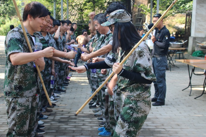 本次活動為期一天半,基地教官將受訓(xùn)學(xué)員分成了兩組,分別針對性的進行了名為“突破自我”的開營儀式,訓(xùn)練堅持不懈的“徒步行軍、極速時限”,加強溝通能力的“盲人方陣”,提升團隊協(xié)作、執(zhí)行力的“真人CS”,深化溝通能力、團隊協(xié)作力的“鼓動人心、木履行走、呼吸的力量”, 以及突出奉獻精神的“飛奪瀘定橋”。
